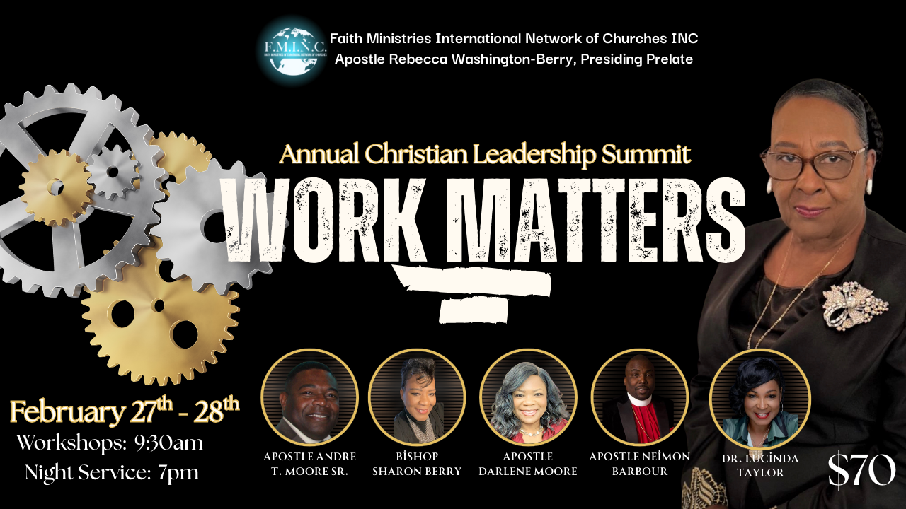 Join us for our 2026 Annual Christian Leadership Summit: Work Matters! You will experience two days power packed workshops and night services. Register now to reserve your spot!